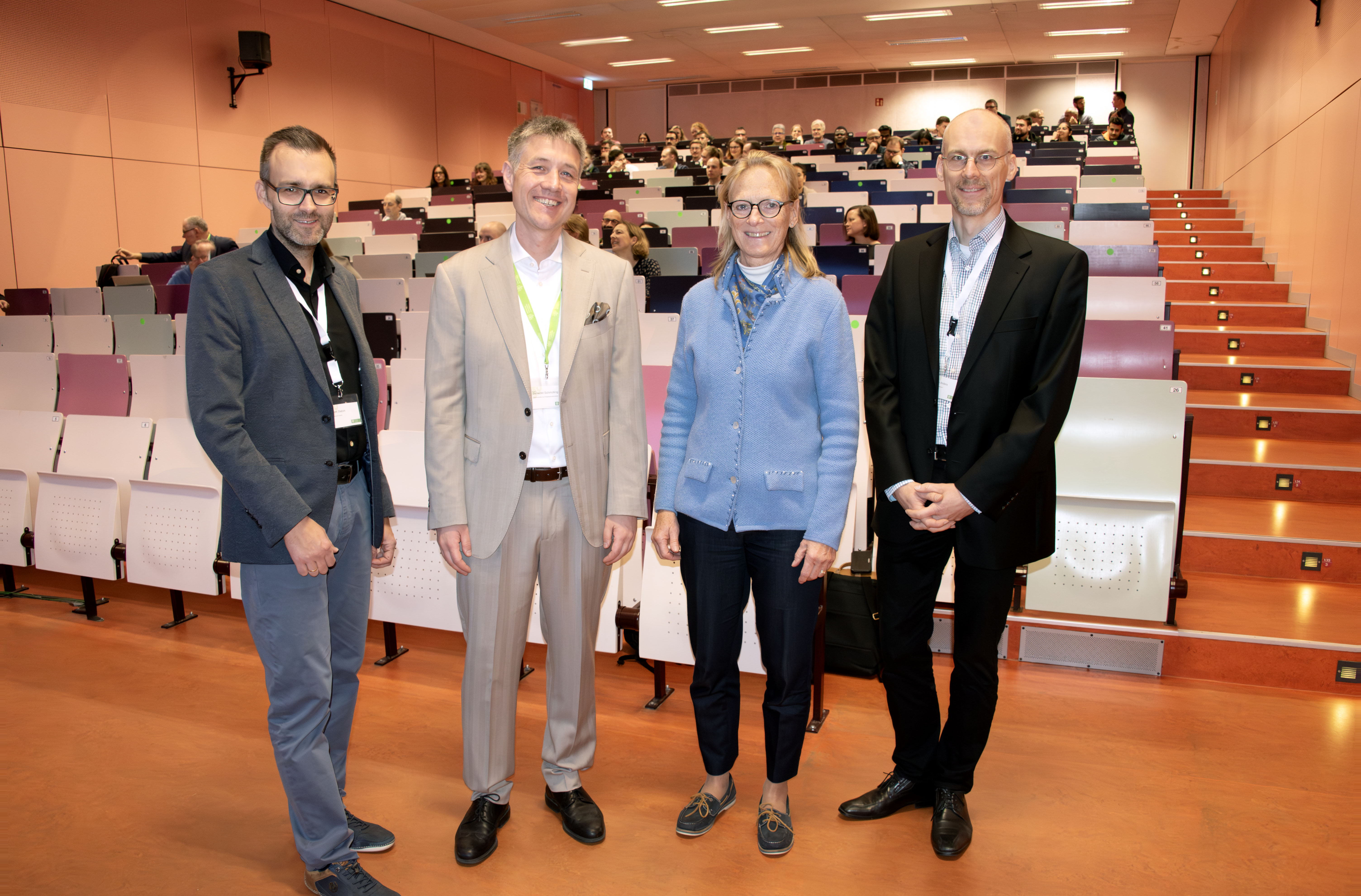 Die Rektorin der Bergischen Universität und das Organisationsteam des Aktivitätsfeldes „Technology Towards Zero-Waste and Zero-Carbon": (v.l.) Prof. Dr. Adam Slabon, Prof. Dr. Benedikt Schmülling, Prof. Dr. Birgitta Wolff und Prof. Dr. Steffen Anders. // Foto: Marylen Reschop