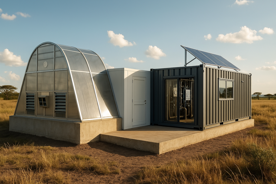Ergänzend dazu wird in Kooperation mit dem Lehrstuhl an einem modularen Produktionscontainer geforscht, der eine dezentrale, lokal anpassbare Verarbeitung und Veredelung von Agrarprodukten ermöglicht. Dieser Container soll es Gemeinschaften erlauben, direkt vor Ort weiterzuverarbeiten, zu trocknen oder zu verpacken – unabhängig von externer Infrastruktur. Dadurch entstehen zusätzliche Wertschöpfungsstufen, neue Einkommensmöglichkeiten und eine nachhaltige Stärkung regionaler Lieferketten.