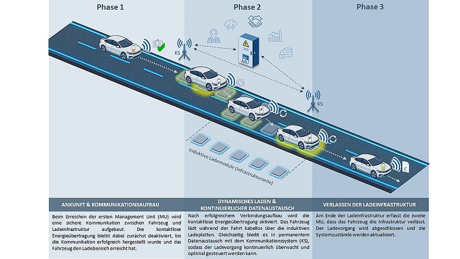 By combining cutting-edge energy and communication technologies, the project aims to create a system that provides an intelligent, demand-oriented, and grid-stabilizing charging infrastructure—without requiring additional land use. The project specifically addresses the challenges of high traffic and population density in NRW and leverages the potential of contactless charging solutions for low-emission and space-efficient electrification of transport.